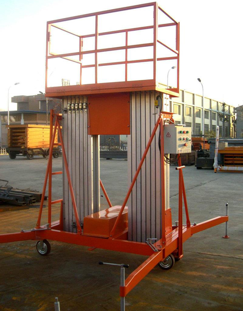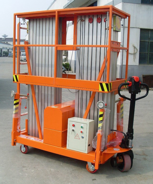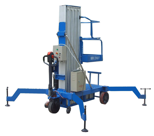 鋁合金液壓升降機(jī)整機(jī)重量輕,機(jī)動(dòng)性好,適合單人操作;特制的桅柱間導(dǎo)輪裝置,升降平穩(wěn)自如;結(jié)構(gòu)緊湊,運(yùn)輸狀態(tài)尺寸小,可進(jìn)入一般電梯的轎廂以及能順利通過門洞和狹小通道;雙重保護(hù)的支腿結(jié)構(gòu),工作更安全,且可貼近工作面升降作業(yè);根據(jù)使用場所高的要求,可做成手動(dòng)放到或電動(dòng)放到式升降平臺(tái)。以滿足門口比較低時(shí)使鋁合金升降平臺(tái)無法進(jìn)入的情況。