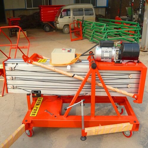 鋁合金液壓升降機(jī)主體采用鋁合金材質(zhì)構(gòu)成,具有造型美觀、體積小、重量輕、升降平衡、安全可靠等優(yōu)點(diǎn),廣泛用于工廠、賓館、餐廳、車站、機(jī)場(chǎng)影劇院、展覽館等場(chǎng)所。該升降機(jī)承載能力強(qiáng),適合于兩人(可攜帶一定的重量工具和材料)同時(shí)登高作業(yè);還可根據(jù)不同環(huán)境訂制成各種非標(biāo)產(chǎn)品,以滿足不同需要;是保養(yǎng)機(jī)具、油漆裝修、調(diào)換燈具、電器、清潔保養(yǎng)等用途的伴侶。